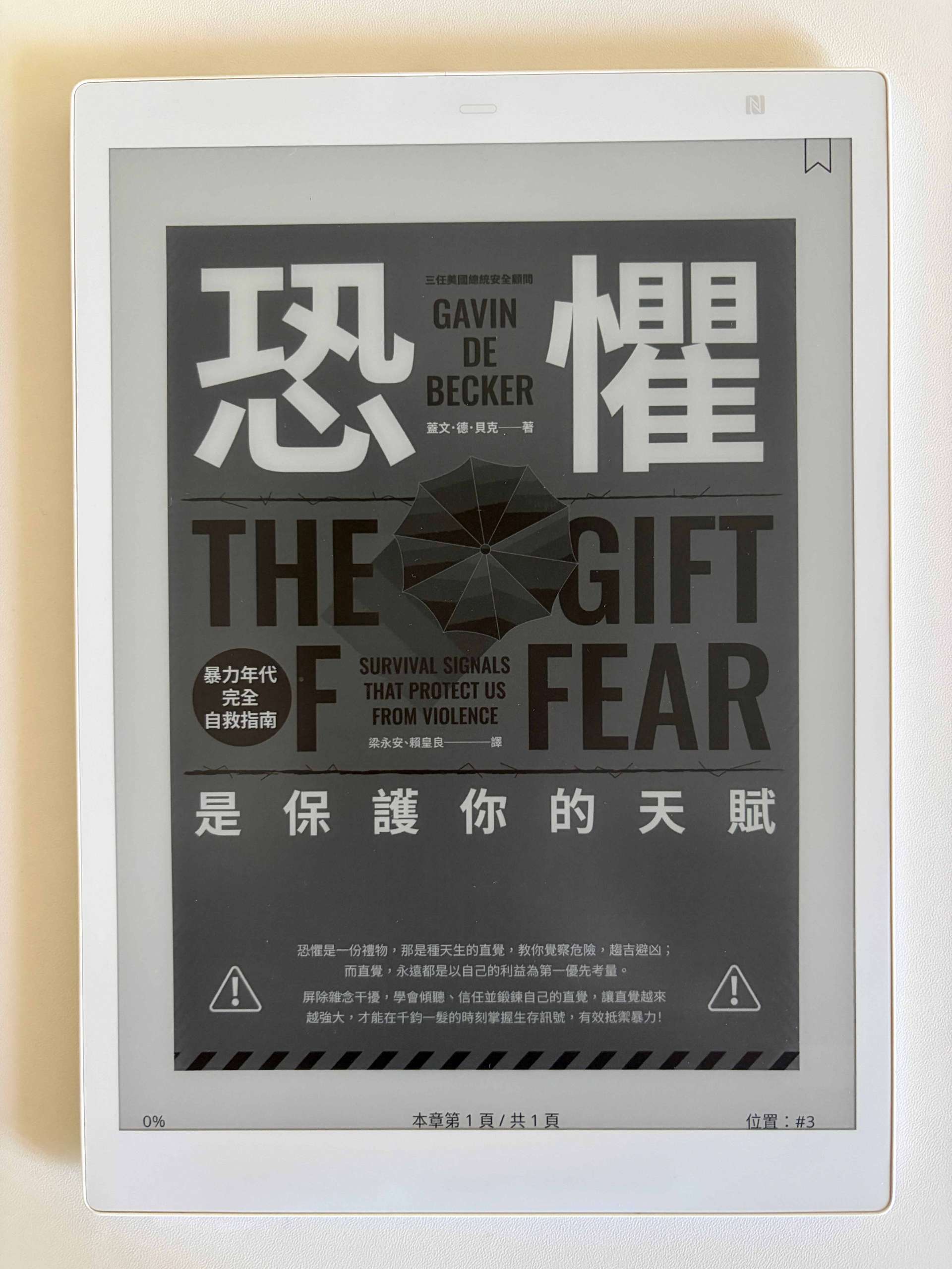 最後,我想推薦一本深深觸動我的書:《恐懼,是保護你的天賦》。本來我只把這本書當成實用手冊讀,但愈讀愈能感受到作者深沉的悲傷,與身為暴力預防專家的使命:「我看見了人類靈魂最黑暗的一面。希望那就是極限,不要還有更糟的。」